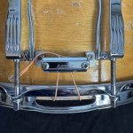 The legendary Ludwig Coliseum Snare Drum provides the ultimate in dry clear projection and tuning stability. This is a drum equally perfect for the arena and the concert hall. This example is in good condition and is all original except for the the heads and snare wires.