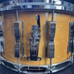 Used Ludwig 8x14 Coliseum Snare Drum, 12 Lug, Maple Thermo Gloss is complete with 12 lug channeled die cast batter hoop!