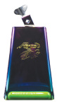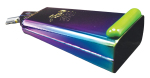 Utilizing the Timbale bell shape and size, this model swaps the traditional white finish for a stunning anodized plating, creating a rainbow effect of blues, purples, greens, and yellows which catches stage lights from every angle. Visually, the bell is accented by a Timber Tone Block painted in a vivid Glam Green, making it an instant standout. Both the Poison logo and Rockett’s signature are stamped directly into the metal.